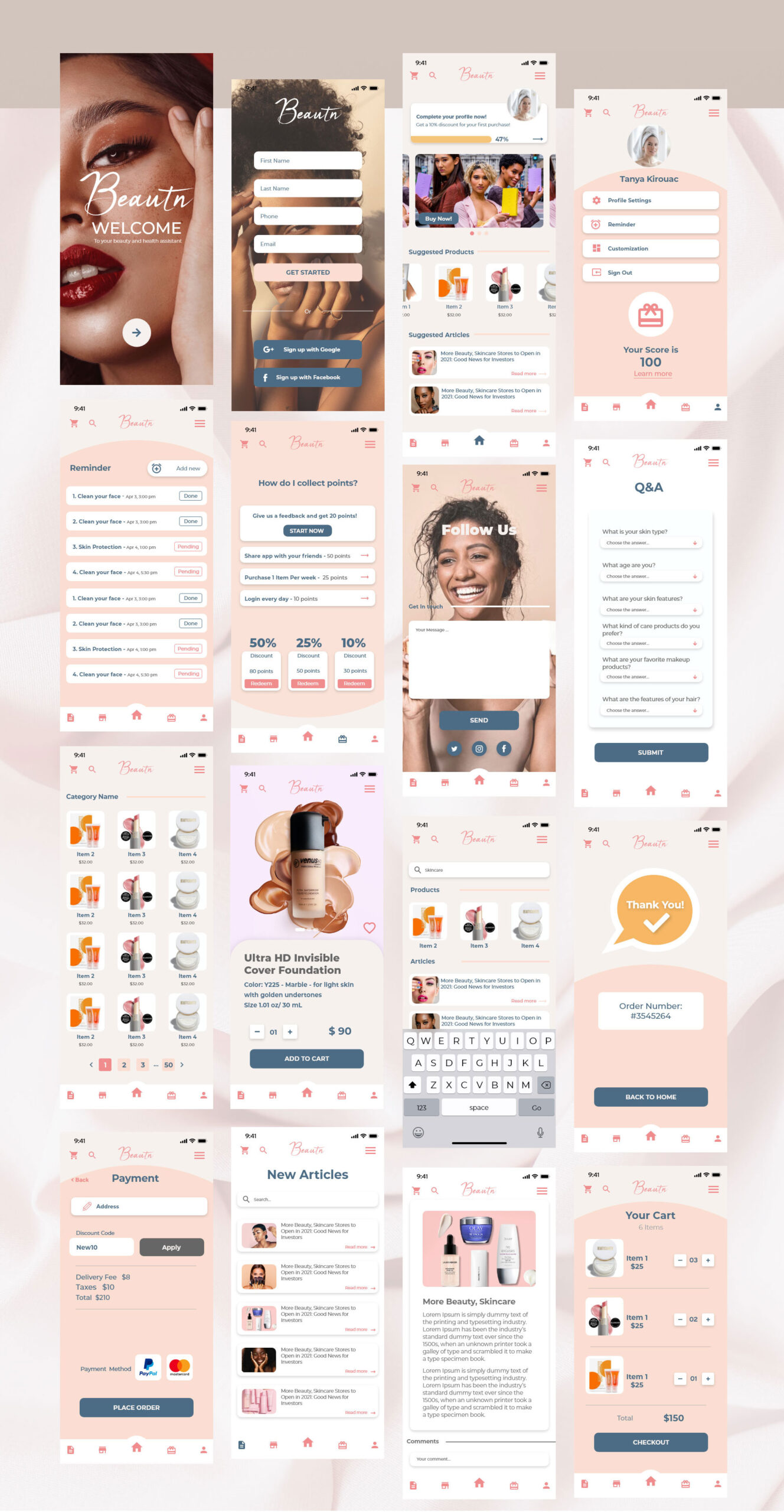 Beautn Cosmetic App UI/UX Design Back to Projects © Copyright 2024 • Leila Azmand Linkedin Instagram Behance