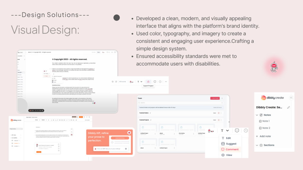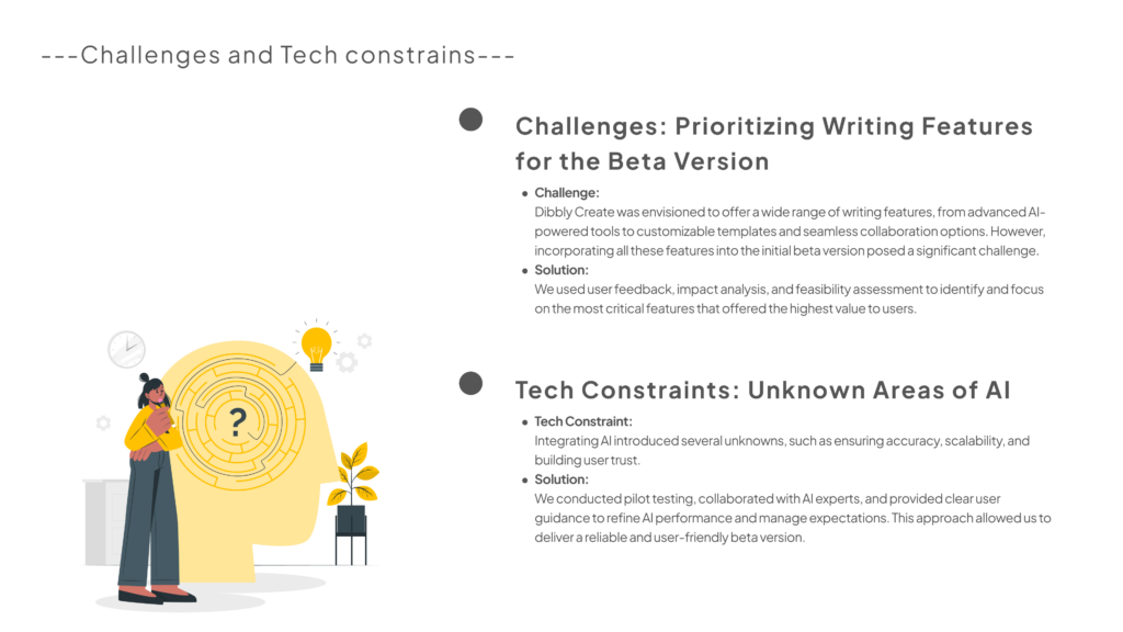 Dibbly Create successfully achieved its goal of providing a powerful yet user-friendly writing platform. Through a thorough understanding of user needs and careful design of key features, we delivered an intuitive and efficient solution that enhances the writing and content creation process for our target audience. The integration of AI technology, combined with a strong focus on usability, sets Dibbly Create apart as a leading tool in the writing industry.