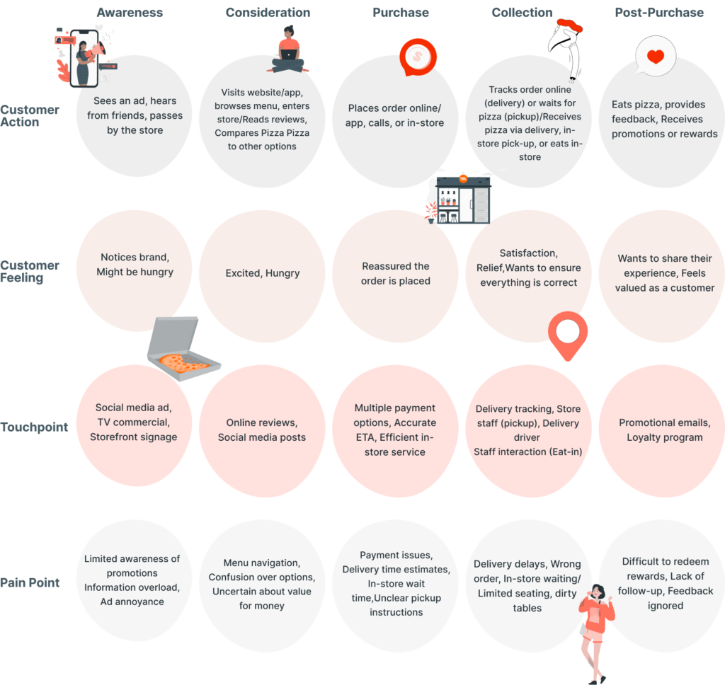 Conclusion: This customer journey map provides valuable insights into the current service experience at Pizza Pizza. By identifying key touch points and areas for improvement, the proposed changes aim to enhance both online and walk-in experiences. Implementing these recommendations will ensure a more seamless and satisfying customer experience, fostering loyalty and maintaining a competitive edge.